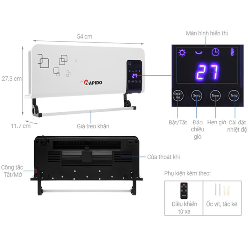 Máy sưởi gốm Rapido RCH2000-D là mẫu máy sưởi hiện đại nhất của Rapido hiện nay. Máy sử dụng điều khiển cảm biến điện tử với các chức năng: